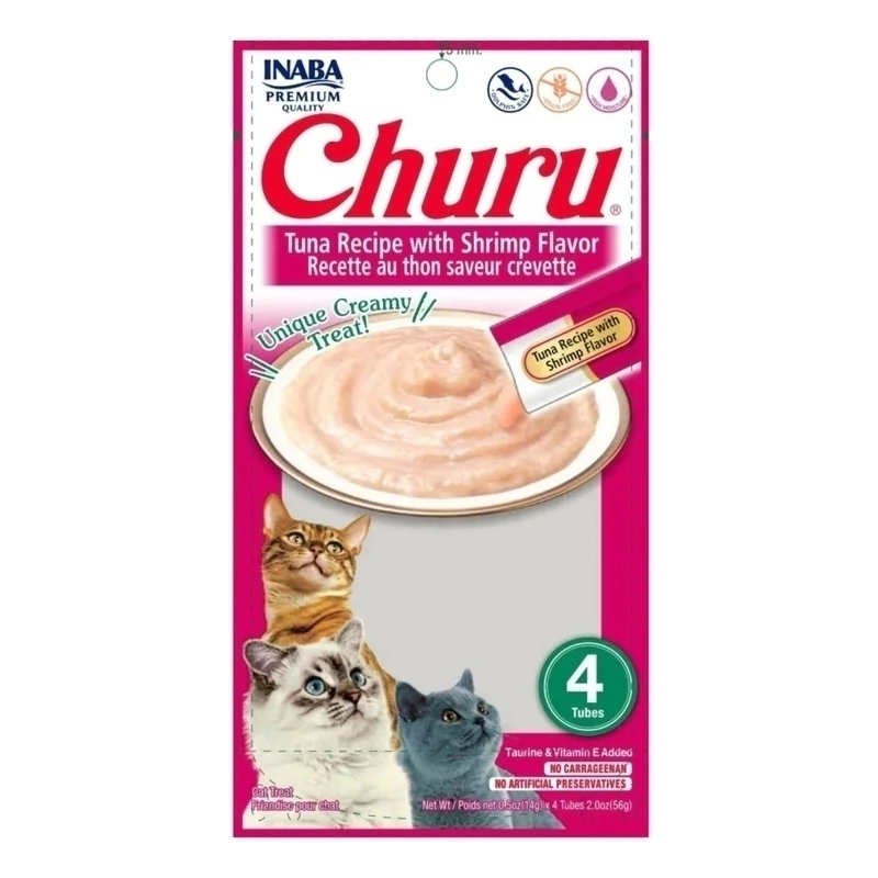 Con CHURU Receta Atún con Sabor a Camarón, le das a tu gato un snack delicioso, nutritivo y hecho con ingredientes de alta calidad. ¡Haz que cada momento de alimentación sea especial y saludable!