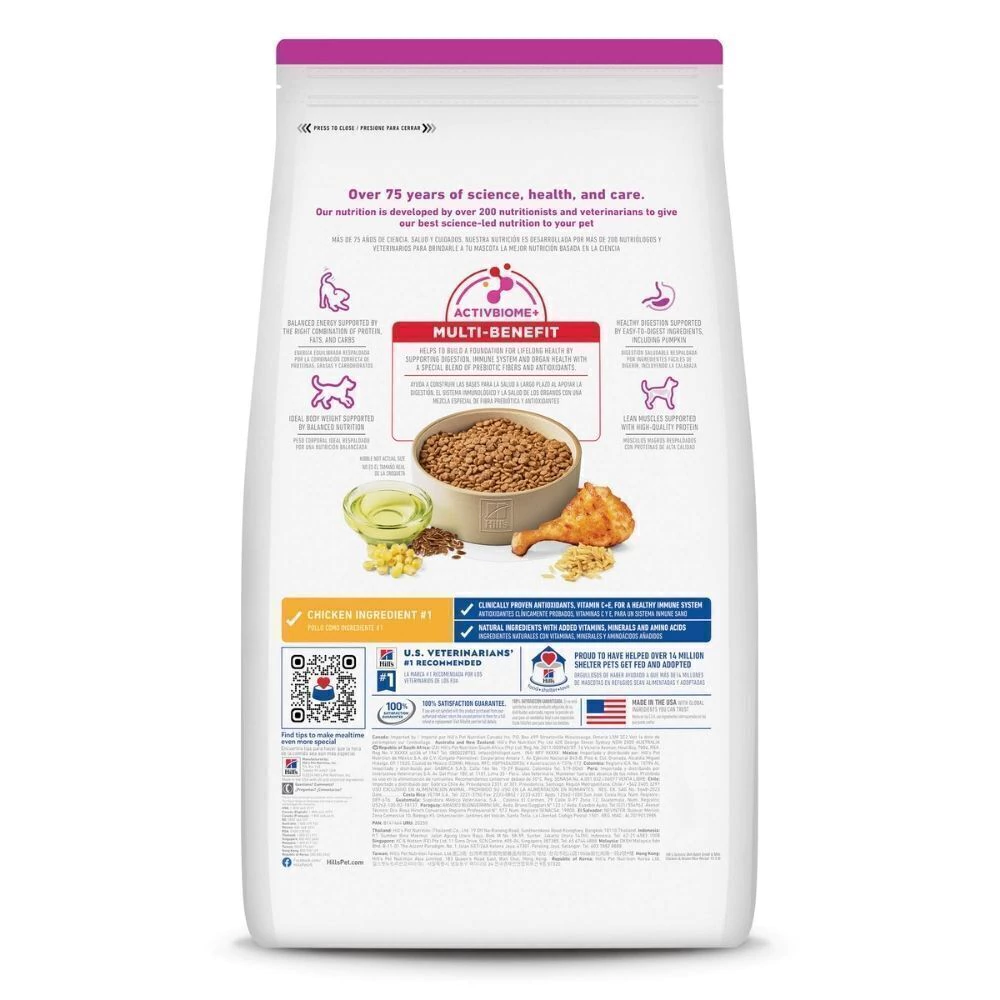 La Hill’s Science Plan Adulto Razas Mini Pollo está formulada especialmente para cubrir las necesidades nutricionales de los perros adultos de razas pequeñas, que requieren energía concentrada, digestión eficiente y un sabor irresistible. Su tamaño de croqueta está diseñado para bocas pequeñas, brindando una experiencia cómoda y fácil de masticar.