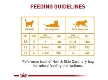 PROGRAMA DE CUIDADO DE PIEL Y PELO 1. Prueba el pienso HAIR & SKIN CARE de ROYAL CANIN® como complemento perfecto para esta fórmula húmeda. 2. Puedes ayudar a proteger la piel de tu gato manteniendo limpios su cama y sus lugares de descanso favoritos. Esto ayuda a eliminar el polvo y la caspa, un caldo de cultivo para los parásitos que pican. 3. Cepille a su gato de forma rutinaria para eliminar el exceso de pelo y los irritantes y utilice siempre productos aptos para gatos al acicalarlo. 4. Si tiene alguna pregunta o inquietud sobre la salud de su gato, comuníquese con su veterinario.